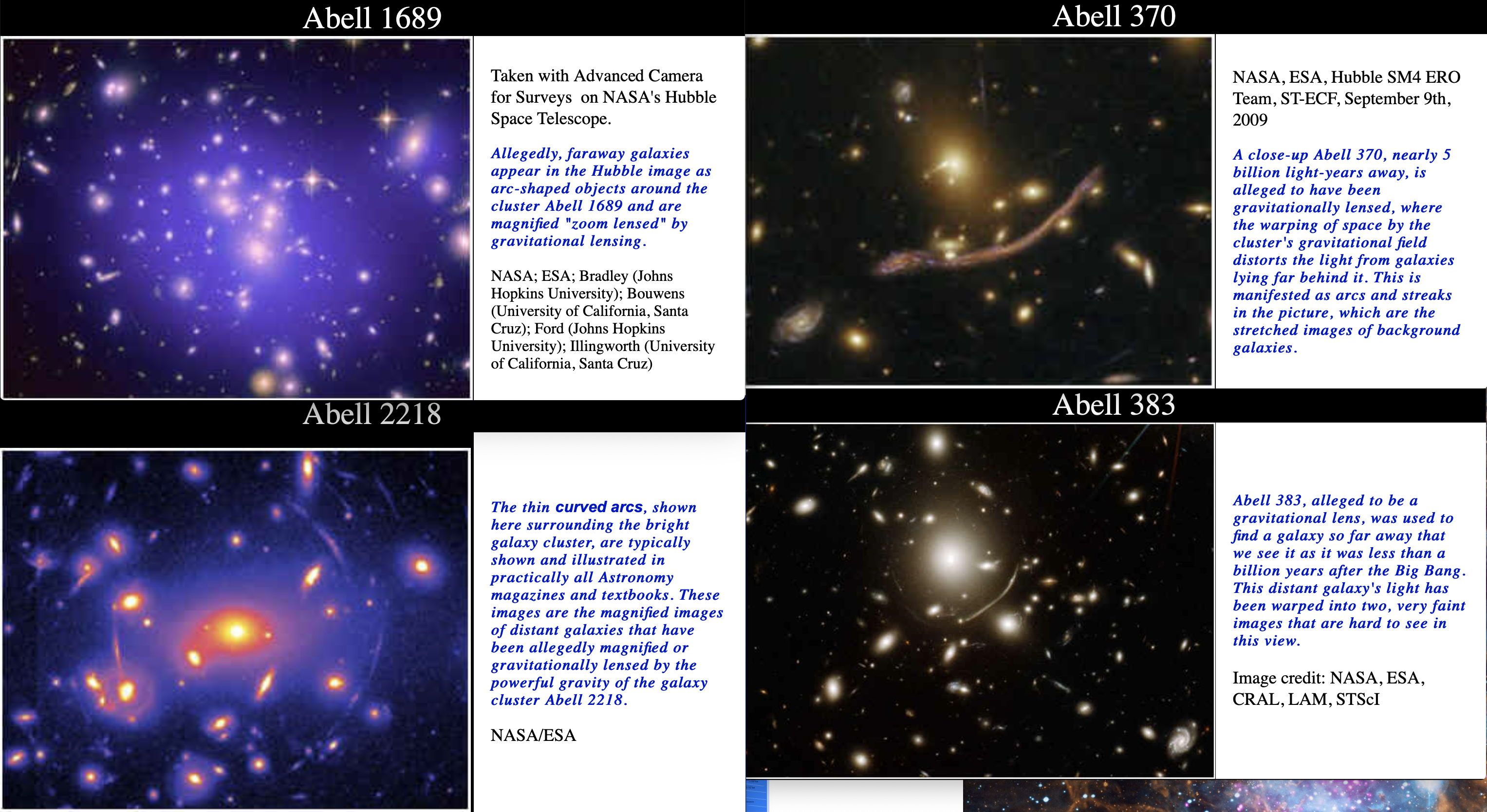 These type of examples are shown in physics courses, texts and PDFs from astrophysicists claiming lensing.