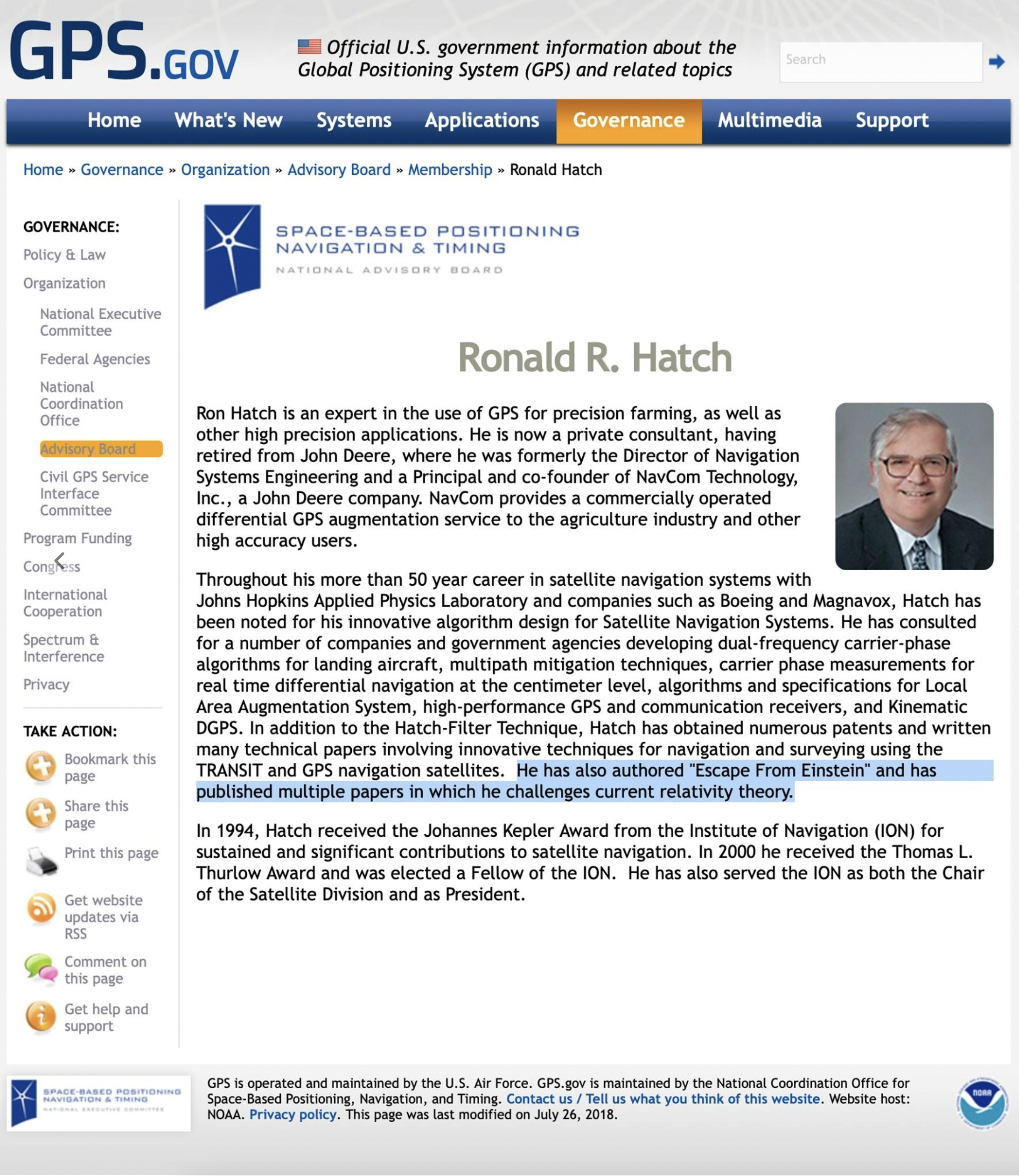 “Perhaps you've already heard that GPS, by the very fact that it Works, confirms Einstein's relativity; also that Black Holes must be real. But these are little more than popular fictions, according to the distinguished GPS expert Ron Hatch.