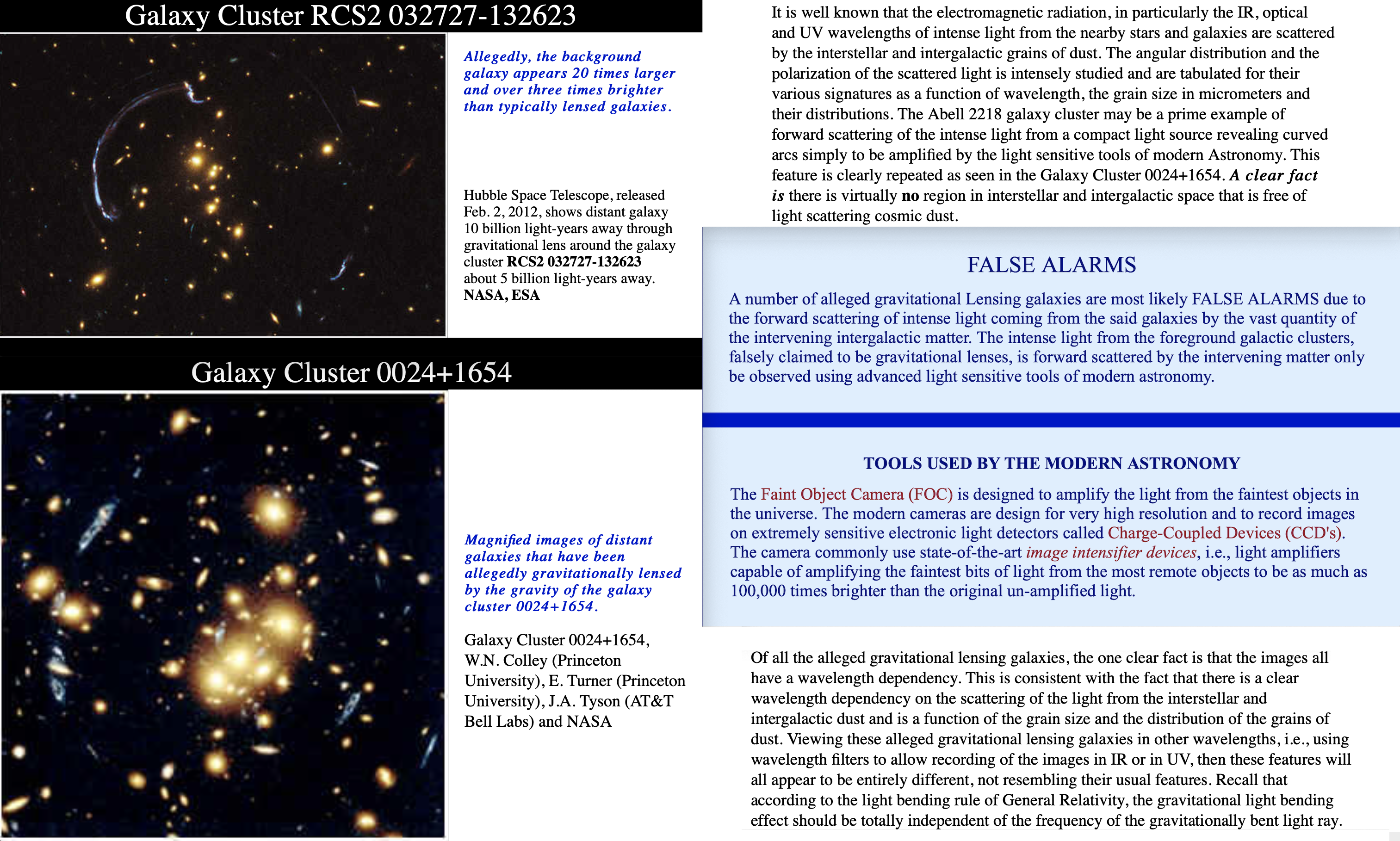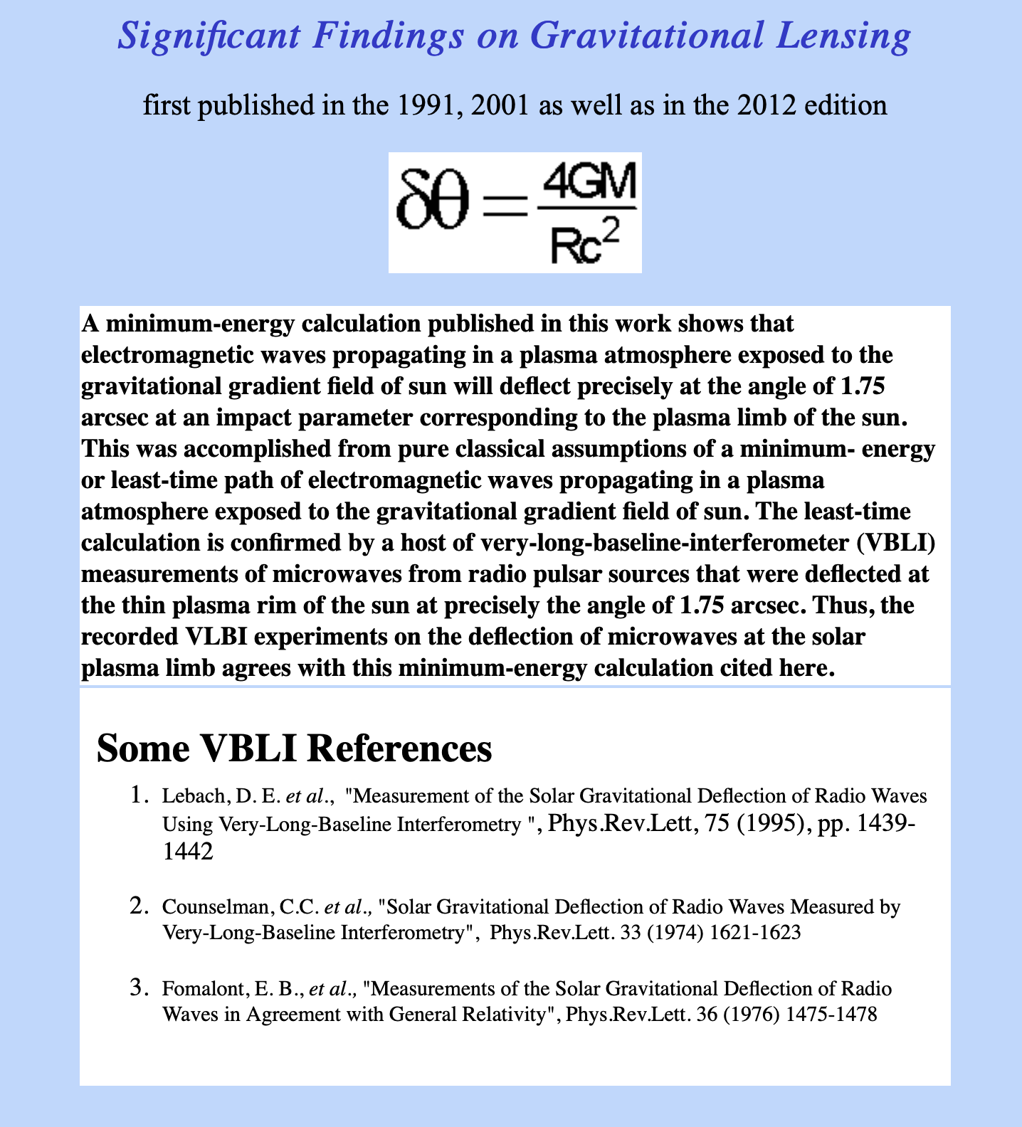 And gravitational lensing can be explained through refraction within plasma. (as seen through microwaves from radio quasar sources deflecting AT the meniscus of the sun at exactly 1.752 arcseconds.) ONLY at 1 solar radii.
