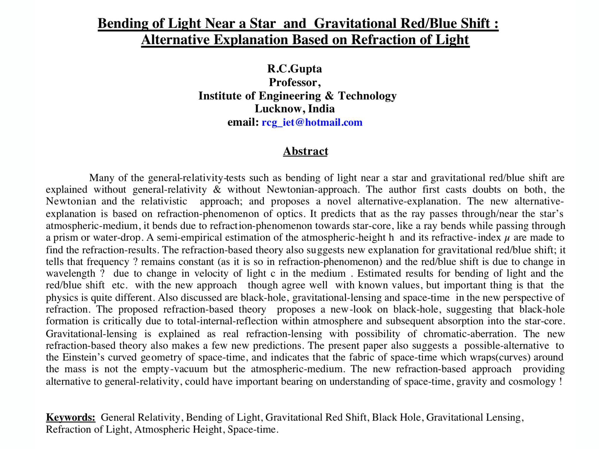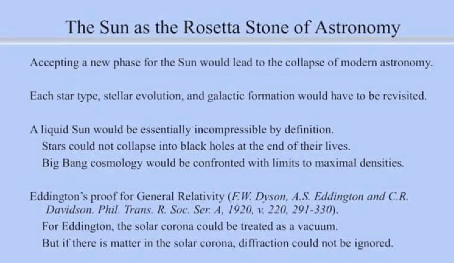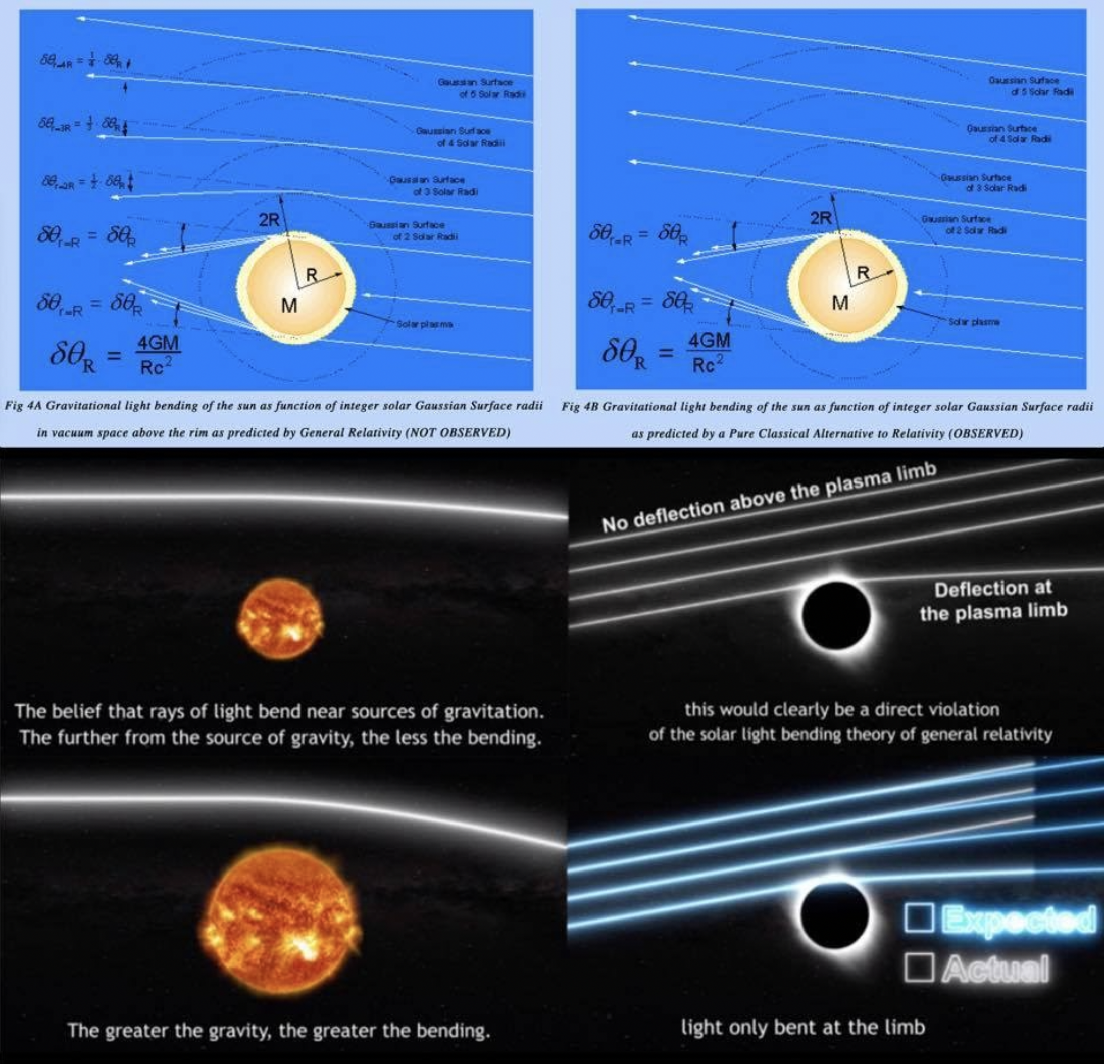 The current gas ball model of the sun violates laws of thermodynamics and known physics. It’s not gravity that bends light which shifted the position of stars on May 29th, 1919... It was an observation of refraction within plasma.