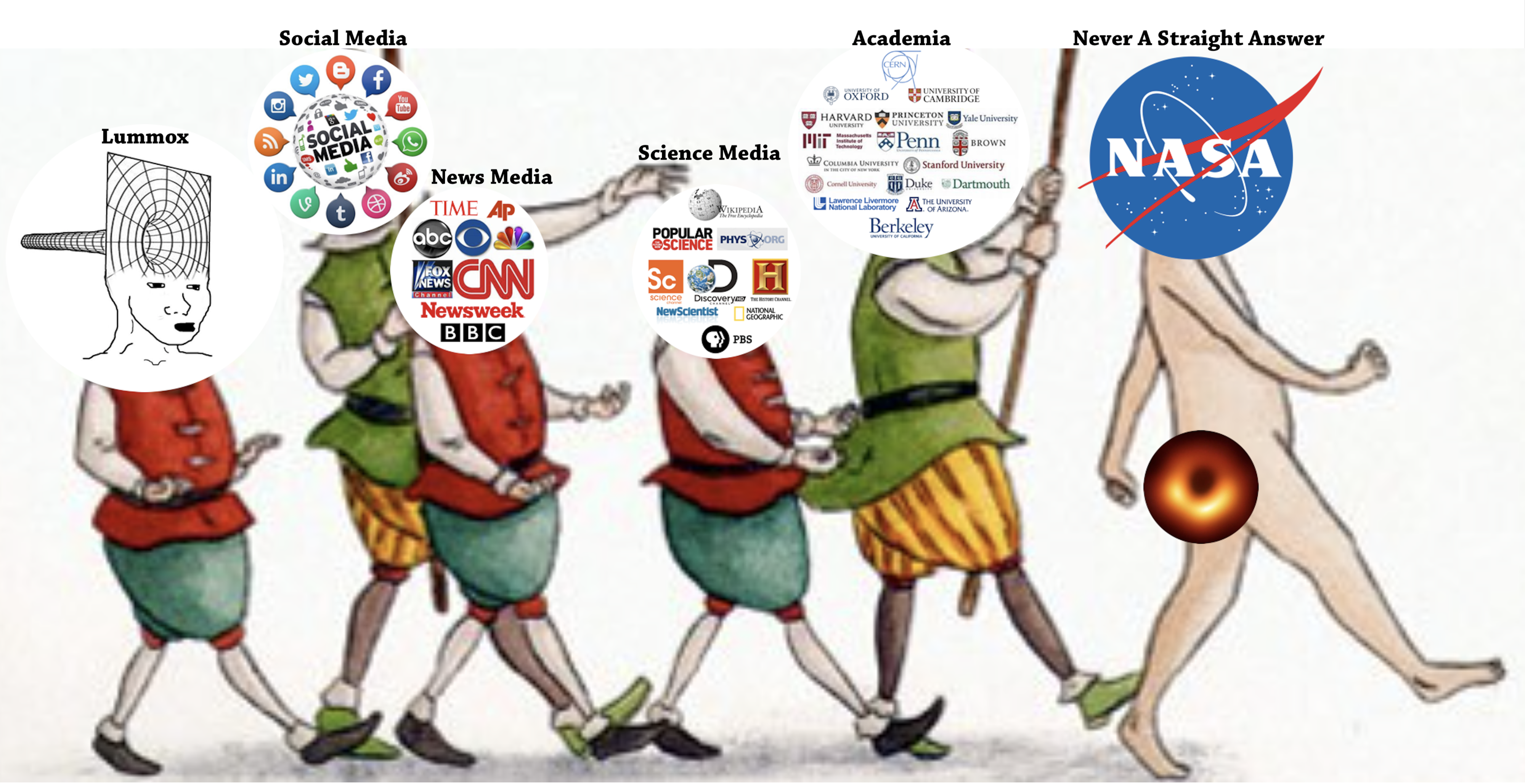 Or like the Emperor's New Clothes. Only "the smart" people can see that lensing in the visible light spectrum above the sun. Only the smart people can interpret the equations and scenarios for you.