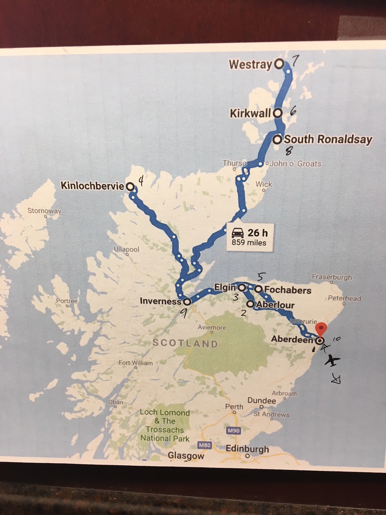 Flying into Aberdeen, and spending 2 weeks on the road with a Celtic musician while doing some exploring on my own. Checking out Aberdeen, Aberlour, Elgin, Fochabers, Kinlochbervie, Orkney Islands; Kirkwall, Westray, South Ronaldsay, Inverness then back to Aberdeen. Any tips on what to check out and do in any of these areas would be much appreciated. I'm looking to do some hiking and be outdoors as much as possible.