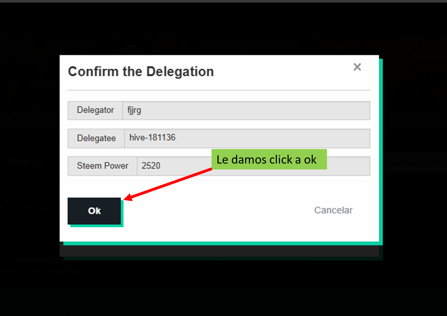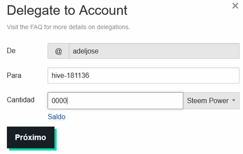 Vamos a hacer un ejemplo de delegación a la cuenta curadora @hive-181136 desde la billetera.
