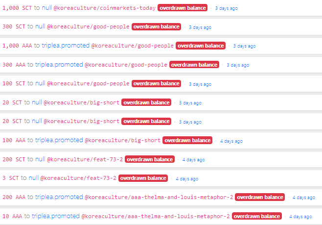 예를 들면, 위와 같이 실제 토큰전송이 없었음에도 불구하고 홍보글 상단에 올라왔던 포스팅은 보유하고 있는 토큰량을 초과하여 시도한 트랜잭션이 거부되었음에도 불구하고 홍보글에 노출이 되었던 에러였다는 걸 확인한다거나요^^