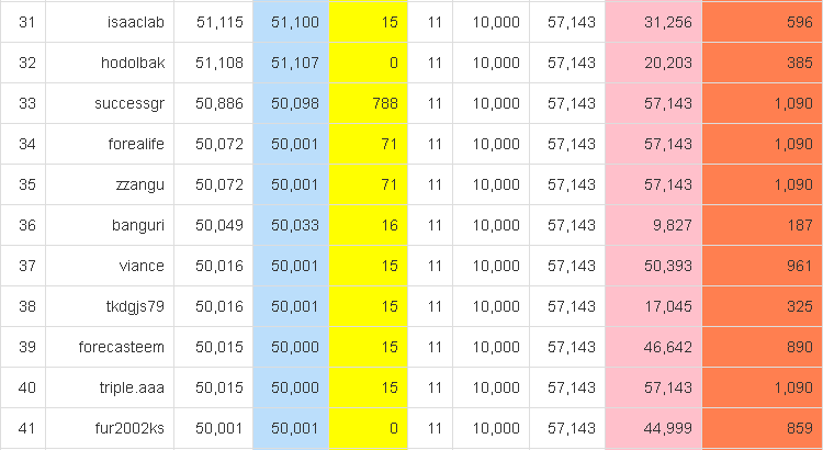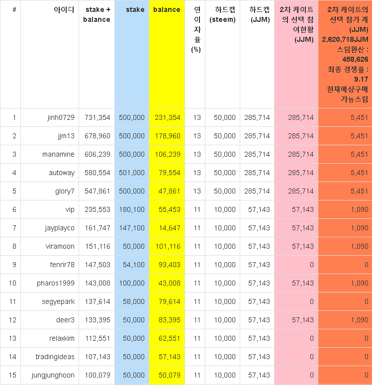 현시각부로 지난 1차때와 비교를 하자면 5만 JJM 이상 스테이킹 하신분들의 수가 6명이 늘었으며...