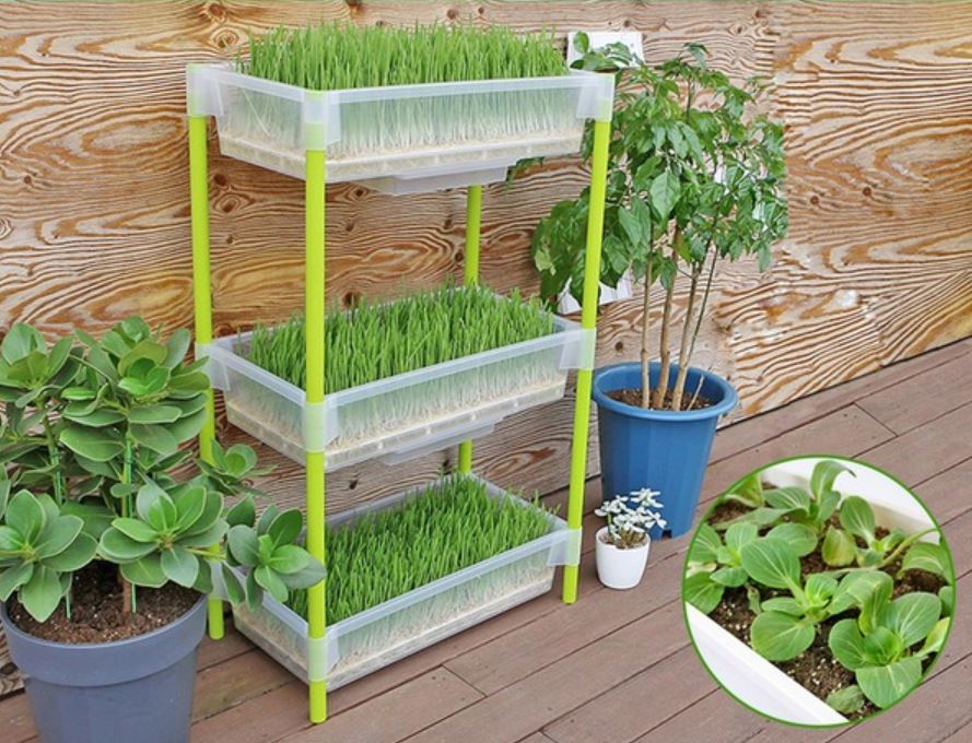 좁은 베란다용 텃밭으로 좋아 보입니다. 수경재배와 토경재배 모두 가능하다고 합니다.