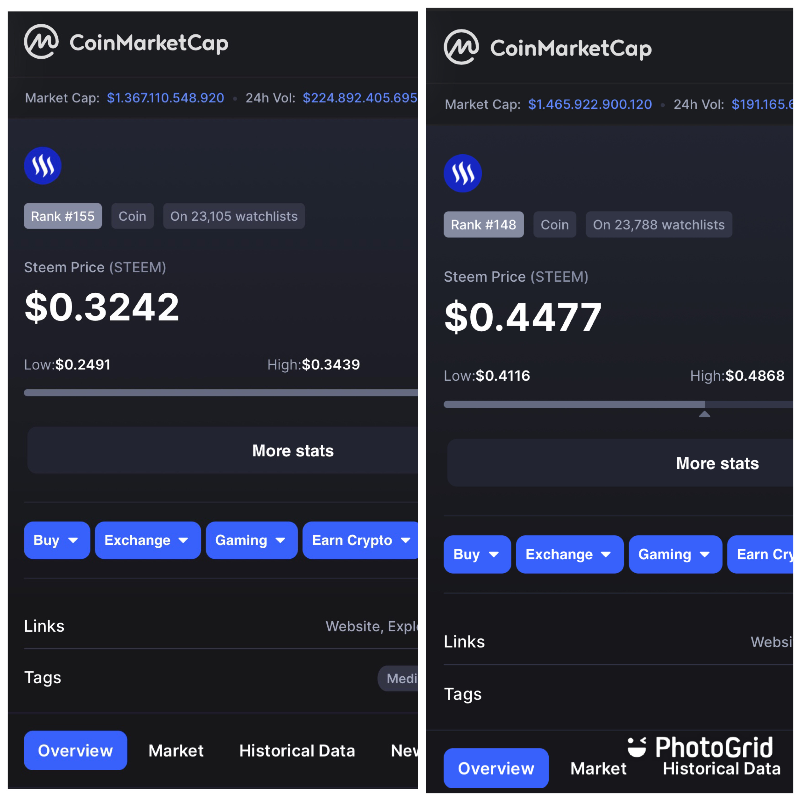 STEEM before ➡️0.3242 $ 💸 after ⬆️ 0.4477 $ 💸
