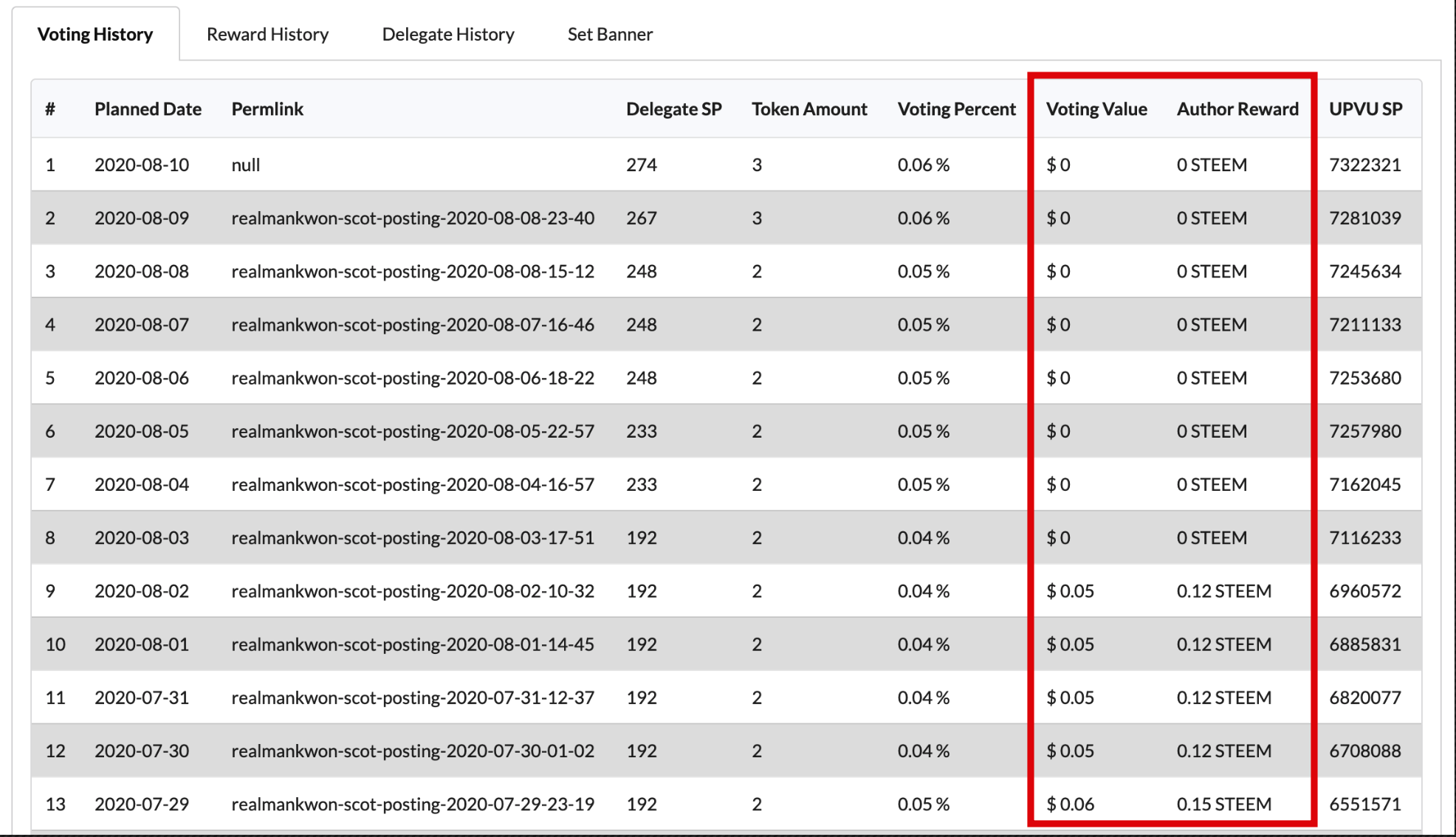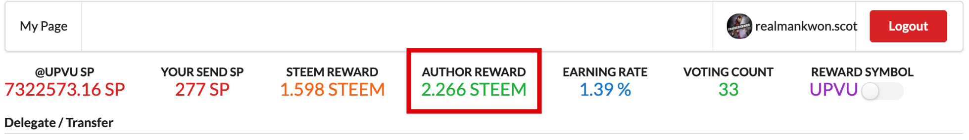 - Author Reward : 페이아웃시 지급받은 저자 보상을 스팀으로 환산한 금액