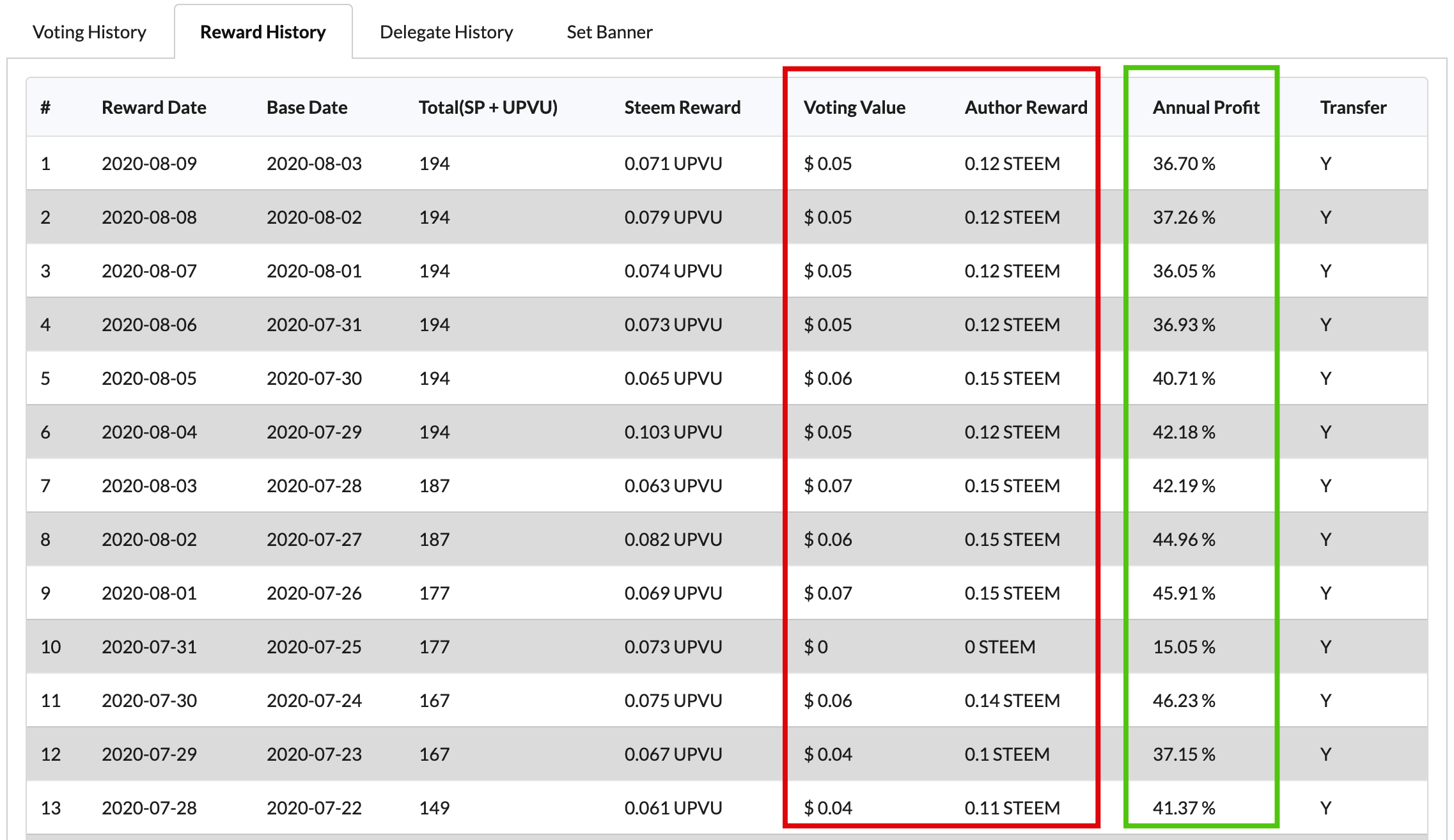 - Annual Profit : 스팀(UPVU 포함) 보상 + 저자 보상으로 계산한 연이율