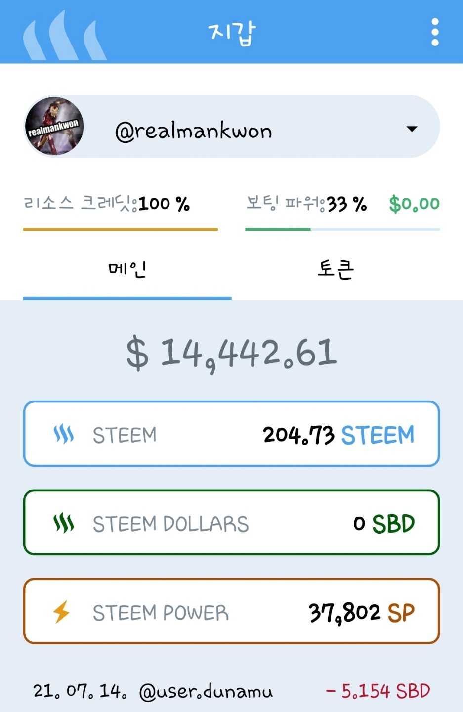토큰 탭을 누르면 스팀엔진 토큰까지 잘 보였습니다.
