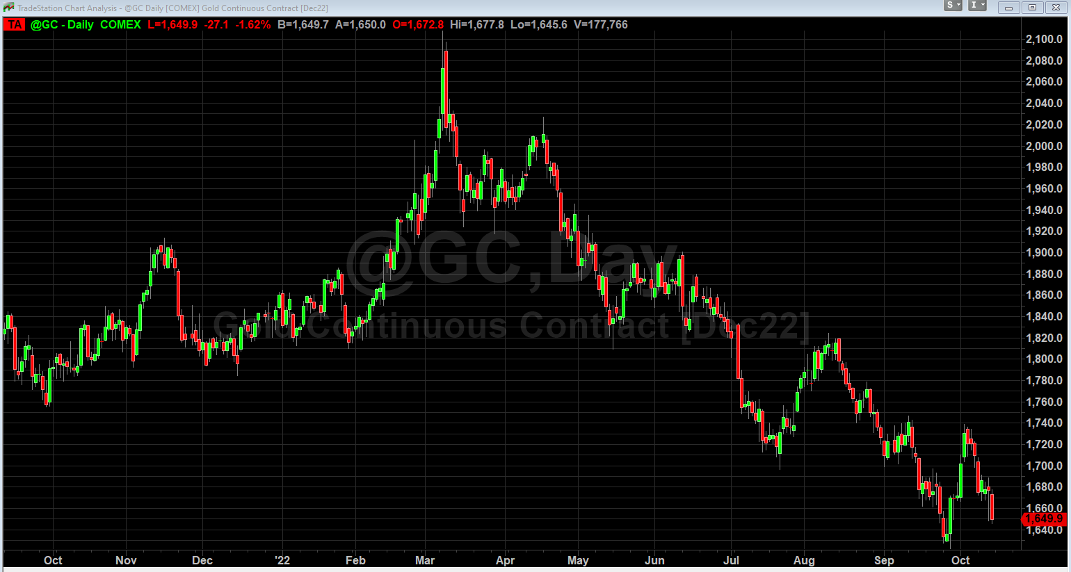 Micro E-mini NASDAQ 12월 만기 선물 10.14.22 & Gold 12월 만기 선물rtytf2 (85)in SCT.암호화폐.Crypto • 4 years ago 어제 CPI 수치가 발표되고 바이든 대통령이 몇마디 해서 쫘악 상승했는데, 그 약발이 하루만에 날라갔나 보다... 금가격도 지난 3월에 $2,100 정도 친다음에 계속 하락. 현재 2년 최저 가격 근처이다. #sct-kr #union #sct-freeboard #sct