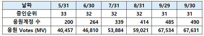 - 30위 진입을 목표로 하고 있습니다. (목적 : 보팅가치상승 , 커뮤니티지원 , 임대가능 스파확보등등.. )