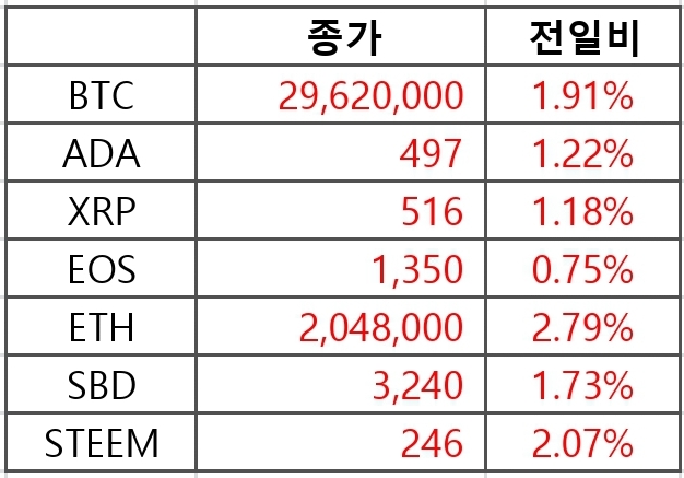 2월 1일자 암호자산 시세(price of cryptoassets dated Feb 1)