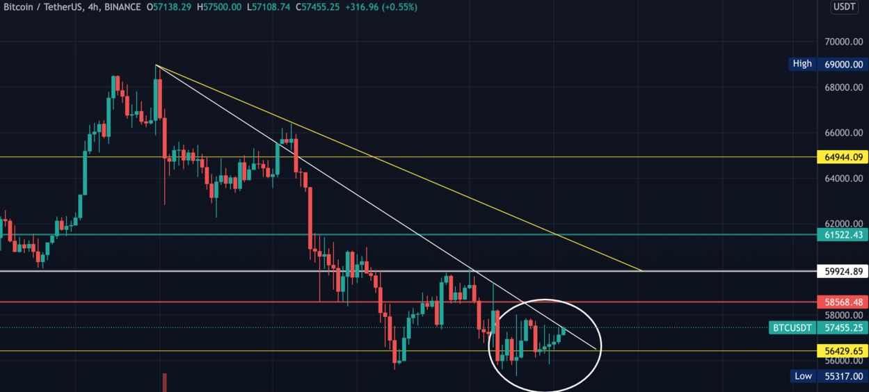 지난 글에서 상승의 주요 지지선으로 제시한 6만달러(약 7140만원)를 결국 회복하지 못하며 하락 추세 속에 있습니다. 하락의 주요 지지선인 5만8000달러(약 6900만원) 마저 지지하지 못하고 있는 상황은 투자자들을 계속 불안하게 하고 있습니다.