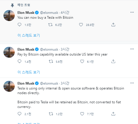 비트코인 가격의 등락폭이 지금 장난이 아닙니다 하루에도 널뛰기를 거듭하고 있습니다. 머스크와 앨런의 싸움입니다.