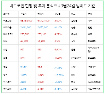 2022년 3월 24일자 08:00 코인시세 및 시황