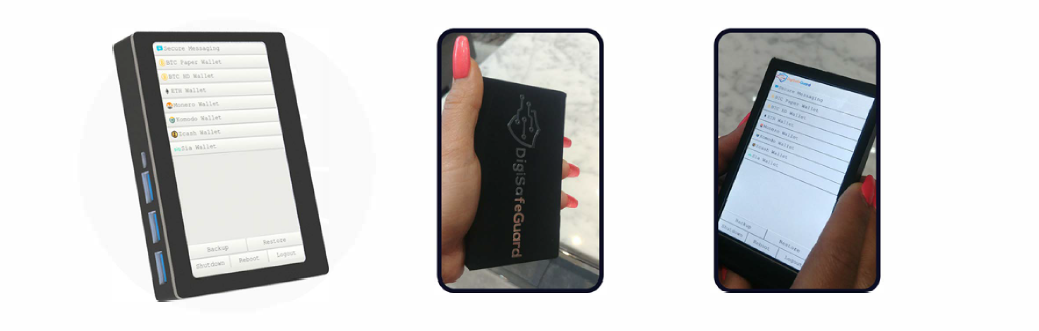 The dedicated hardware is called DSG (DigiSafeGuard) in Securypto which acts a hardware wallet for storing and spending your digital assets. Use of DSG offers anonymous messaging through any unsecured channel.
