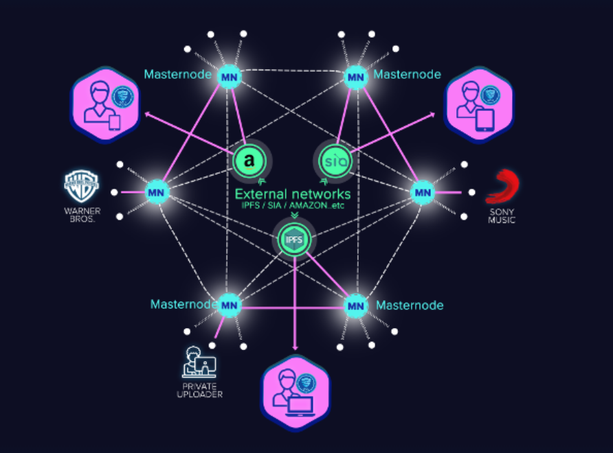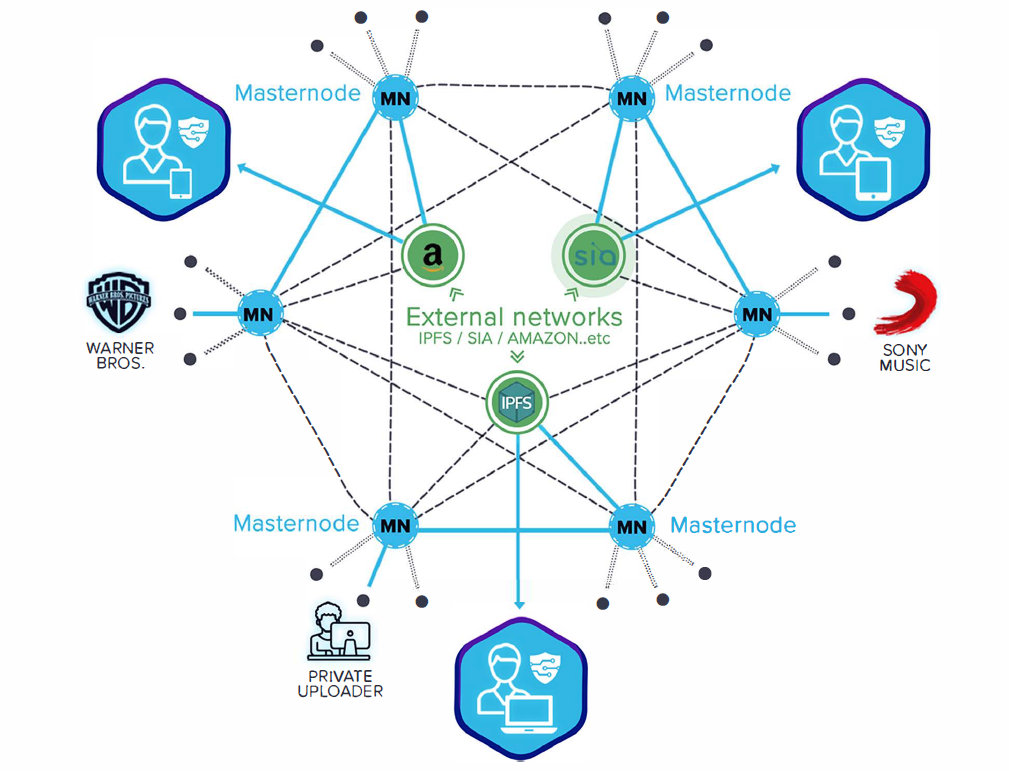 • In the paid content management with the blockchain technology, Masternodes get paid by the uploaders. Content uploaders can choose to get paid by the downloads. Therefore, an emerging market for uploading new content to the network will develop. Masternodes include the file location and receiver's public key on to the blockchain using an onion-based protocol like TOR network. The Sender and the Receiver can exchange keys without compromising their privacy. Full anonymity is finally here.