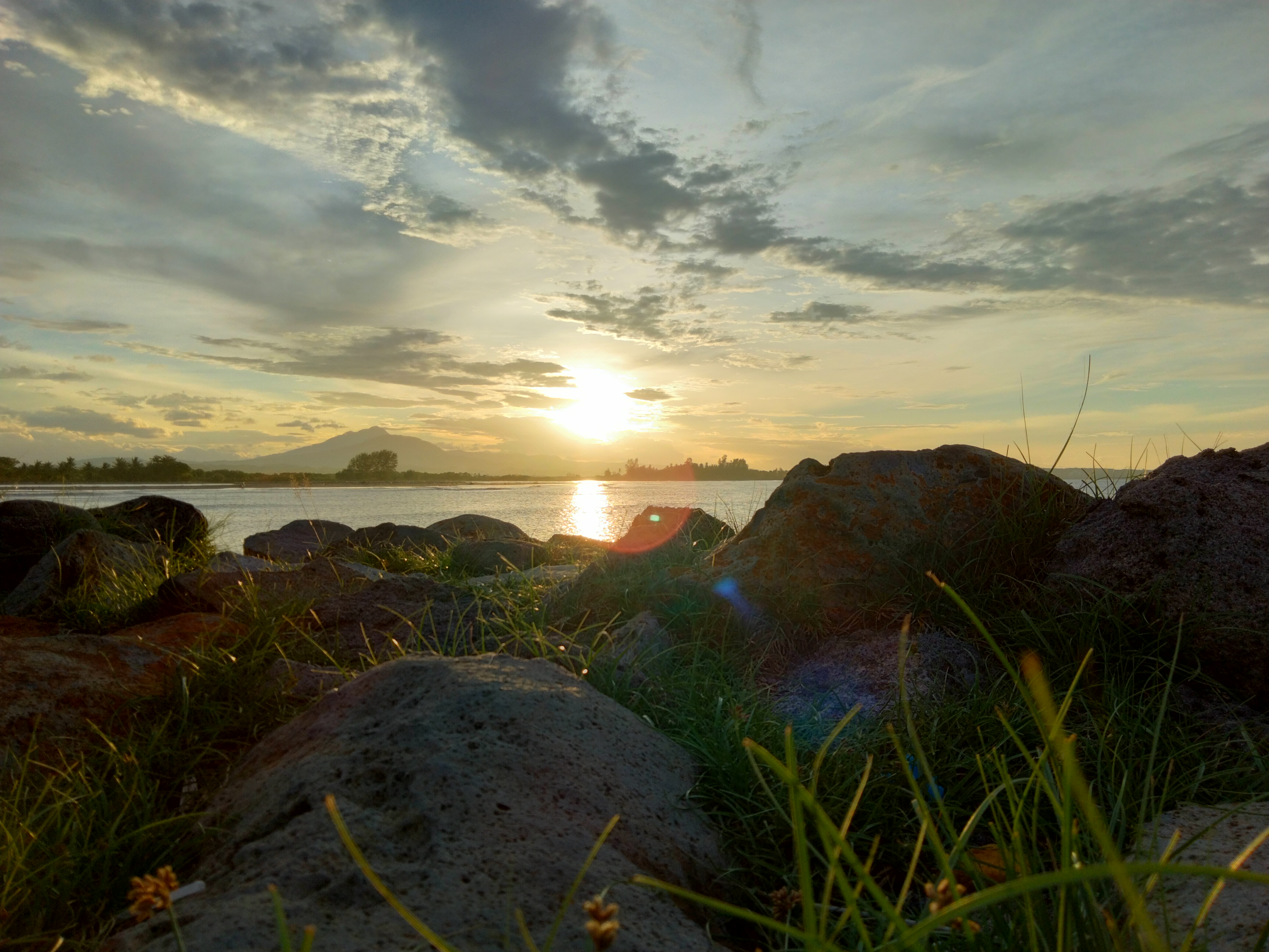 Sunset di hamparan laut Pasi Rawa Kota Sigli, Aceh. Begitu elok dan indah.