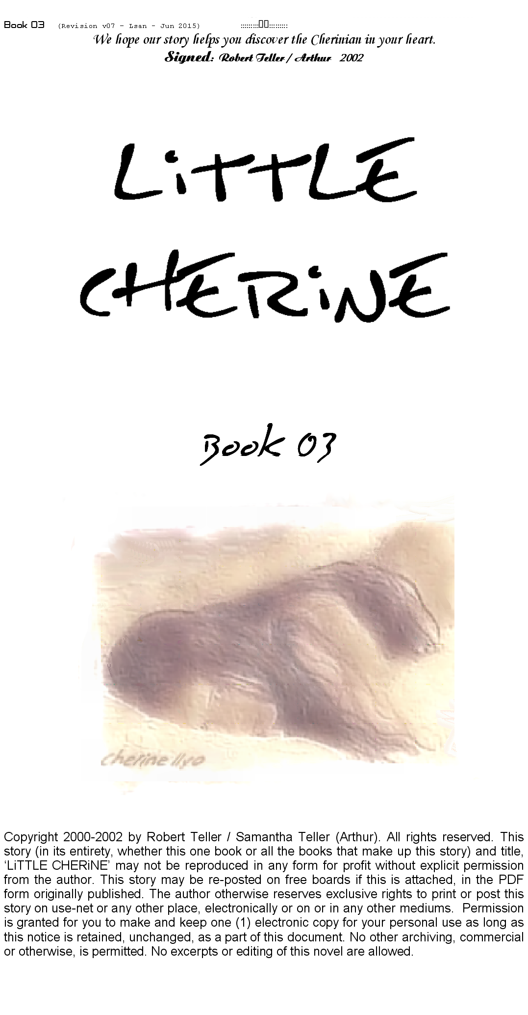 I hope you enjoy reading this story of fantasy, adventure and love - and should some of it be true for our reality, I hope you will love our Cherine.