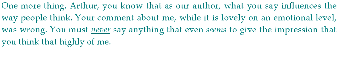 Robbie whispered to Dommi, she nodded and he spoke up. “I’ll ask the Unation to keep quiet about this for a month or two so that we have time to consider how we present this to the Normals. I have a feeling that hearing we have one more advantage over them will not sit well with most of them.”