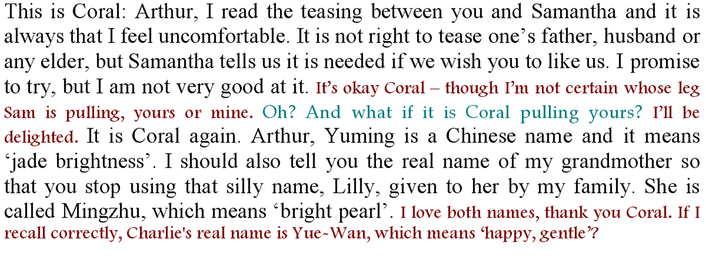This is the first time ever us girls have resented bringing guests to Freddie and the turning of the soul-birth of our daughter into a circus. We wanted to be with Coral and sense Yuming every single second to the moment the soul becomes a part of her and thereafter. These moments are very precious to us and wasting them on people who lack the empathy to appreciate what they are costing us for petty reasons strains my goodwill. With the crowds behaving like tourists, as if they are here to visit each other and gossip, to see and be seen for snobbish reasons, us girls are having to spend our time floating just above them and shepherding them back to their seats. This is a private family-time and they should have respected the goodwill we’ve shown and…Robbie cut in to tell me that we should also respect the goodwill strangers have shown us. I guess the love we’ve been shown is wonderful and I should not grumble, but I’m a little girl, not a saint.
