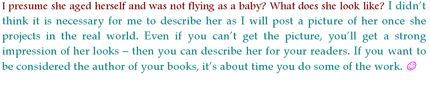 Robbie hesitated and then laughed. “Ivgos, can you wait another week? We are going to visit the reality of magic.” Robbie pretended to feel mystified by the excited reaction of Ivgos, teasing him. Ivgos loves it when he does, and if he is in body age young enough, he sometimes sits on Robbie’s lap afterwards - that is because of the emoting of Robbie after he teases someone he loves.