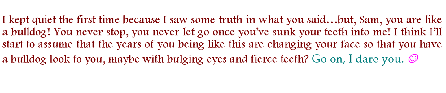 Marian came to visit and she was uncomfortable. Julie wanted her to be the same apparent age as her, sixteen, and Marian has always thought of us girls being so young for Robbie a slight degeneracy. She tried to pay back Cherine’s half-hidden amusement. “Your spiel with that sweet Byisina, it reminded me of the way mediums and spiritualists talk. The poor thing will now have to waste years trying to work out what you meant - and she will not be pleased when she realises you conned her.”