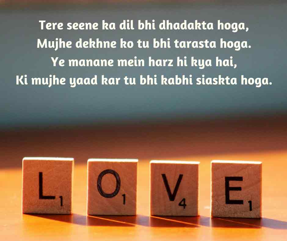 One of the beautiful creation -"Love". To express love and feelings to her/him, Shayari is love words which we can use. Shayari is the best way to make happy or romantic for your partner If you love someone. love is sensation we can sense it. by giving gifts, lovers are making a good relationship, send love Shayari. By saying some words of Shayari you can easily impress peoples and it also makes us happy. So choose your best Love Shayari below. If your girlfriend gets angry then these Hindi Love Shayari is a perfect choice here.