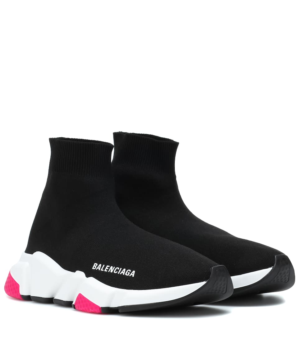 Para #Balenciaga, el efecto de calcetín de punto, la suela texturizada blanca, la tecnología de suela de memoria, el amortiguador, un arco de 10 mm y la ligereza -pesan sólo 240 gramos- son los detalles que convierten a 'Speed Trainer' en una apuesta segura entre los runners. Fabricadas en Italia, su composición es 80% poliamida y 20% elastano.