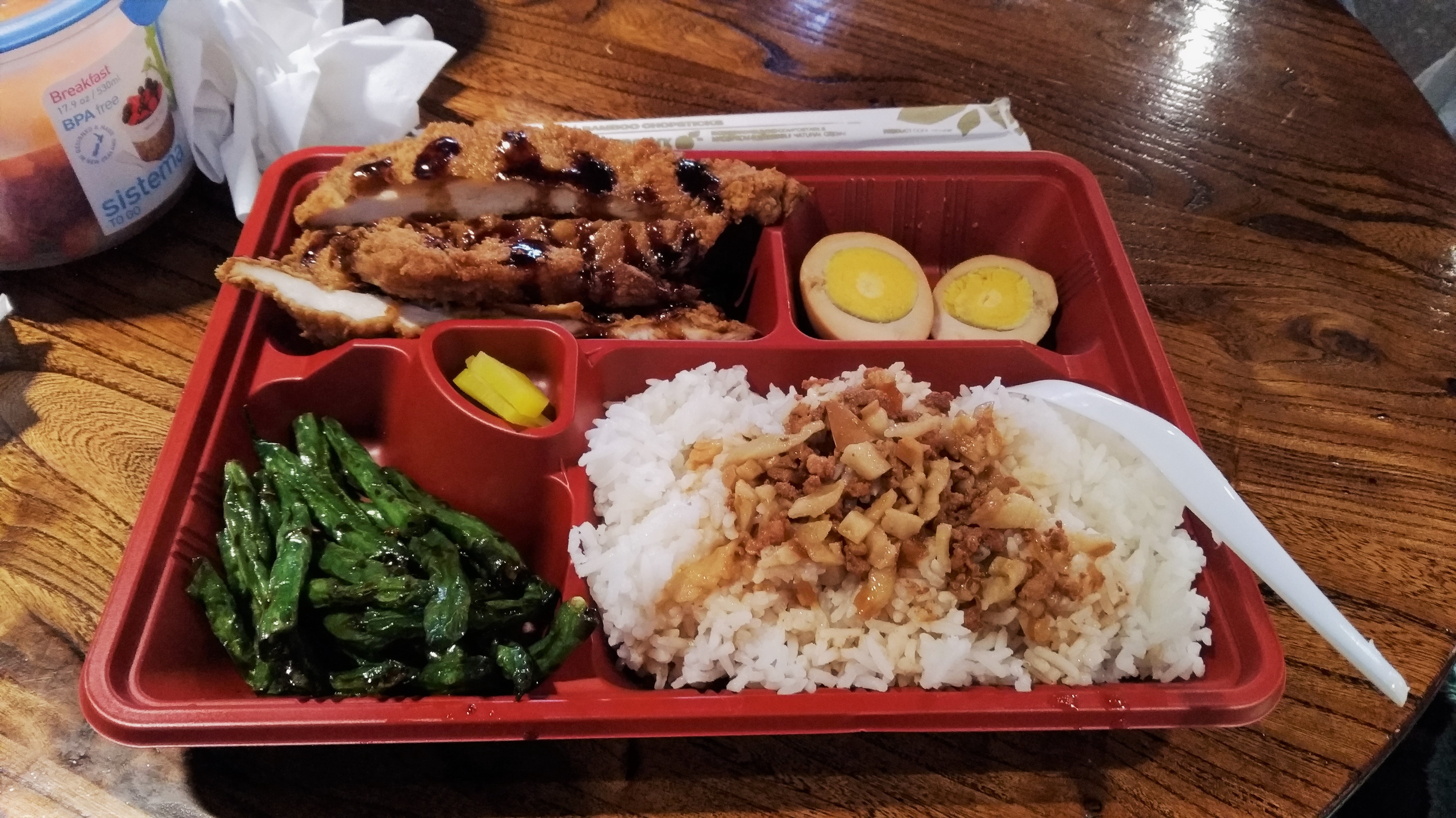 After he woke up from his nap, we went to this Asian food court and got a Taiwanese fried chicken bento box.