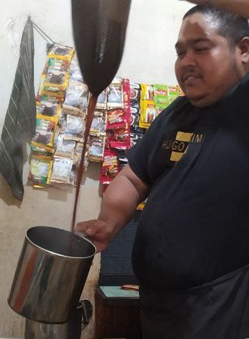 The coffee offered there is robusta made with traditional techniques by filtering the powder with heated water. The filter is lifted high to release the smoke trapped in the coffee.