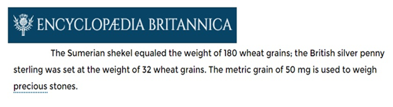 I have been really curious to see how much grain could be traded for the silver, or how many grains of something can we get as an equal weight. So, accordingly, the Sumerian shekel equals 180 wheat grains, and just like cryptocurrency, these things can be also divided.