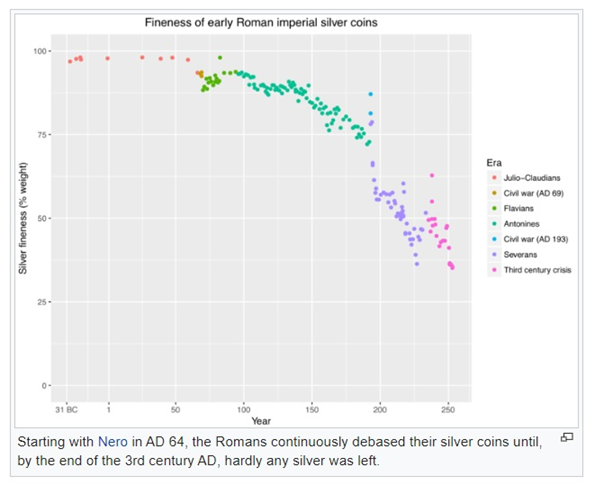 This started to shrink the Roman Empire, and they had to debase their currency.