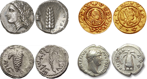Because even some of the Mediterranean region coins, like the ones below, shows a corn image on one side of the coin and wheat, tools, and entertainment images on the other side. If you drop this on my hand at any time in the last, say, 10,000 years, I would know what this coin is for.