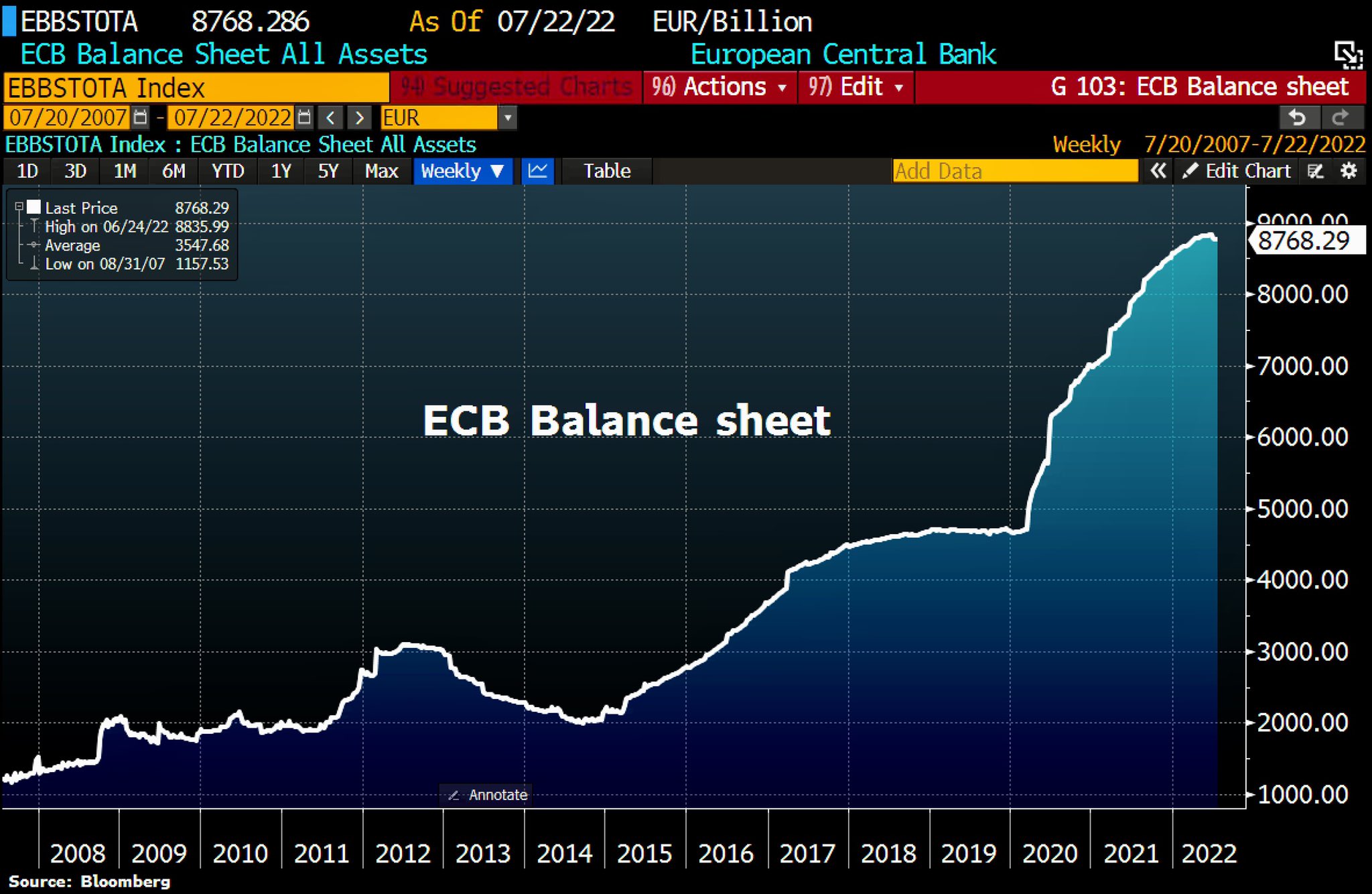 ECB Balance Sheet Total as of July 22nd , 2022, ©Holger Zschaepitz