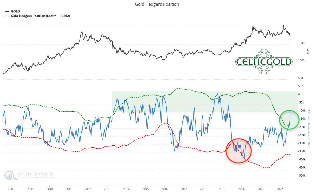Commitments of Traders for Gold as of July 25th, 2022. Source: Sentimentrader
