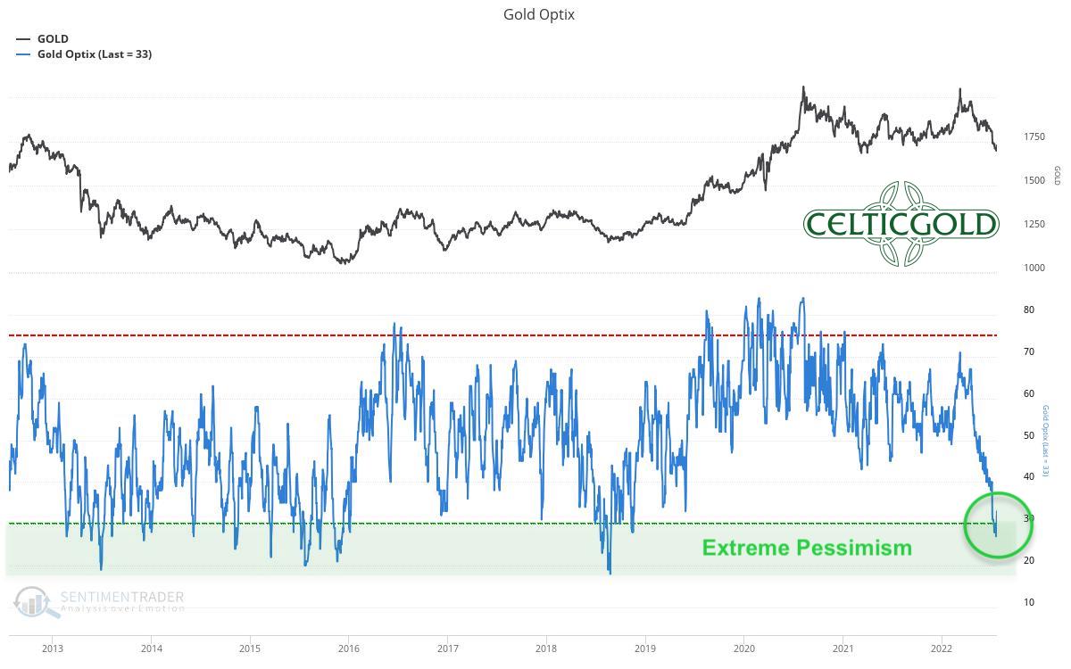 Sentiment Optix for Gold as of July 25th, 2022. Source: Sentimentrader