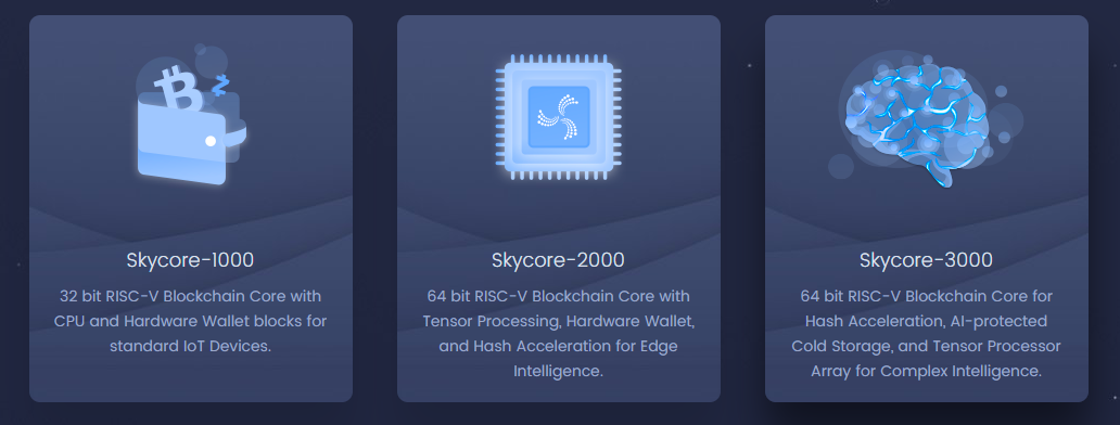 Skynet core is a blockchain core in the form of a chip with AI processing that can be plugged into the appliance. The scalable small chips with the optimized crypto engine will have different hash accelerators, tensor processing unit (Neural processing unit) that will increase the speed of AI learning and hardware wallet with UID and auto permission.