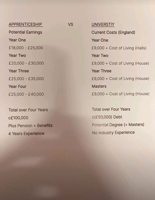 University vs Apprentices in the UK