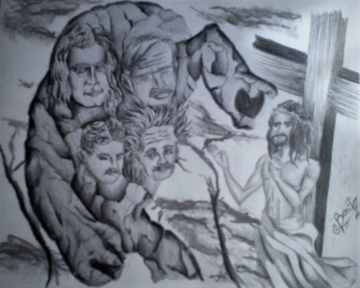 There have been more than 4,200 religions in the world and almost everyone believes that their God is the only one, that only theirs exists. Almost all are held in a book that, ironically, they claim to have been altered by the hand of man. Science, for its part, almost always tries to give a reason to everything, discrediting religion; but it can't always. Only time will decide how and when this dispute will end. I hope you liked my drawing and I hope you can support me with a comment, suggestion, resteem or your valuable vote; it would help me a lot.