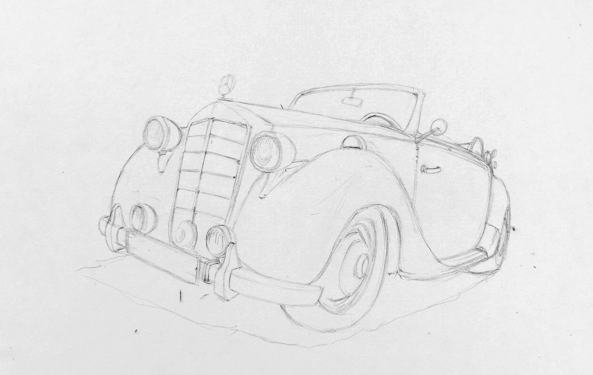 I begin with an extremely fine line. I need to mentally distort the information that reaches my eyes. This stage of the drawing is extremely delicated and needs tons of concentration. Once I finished it, I need to step back for a while and come again to see my sketch. If I find that everything is correct, and the car can reveal its intrinsic character, then I go to next stage: painting.