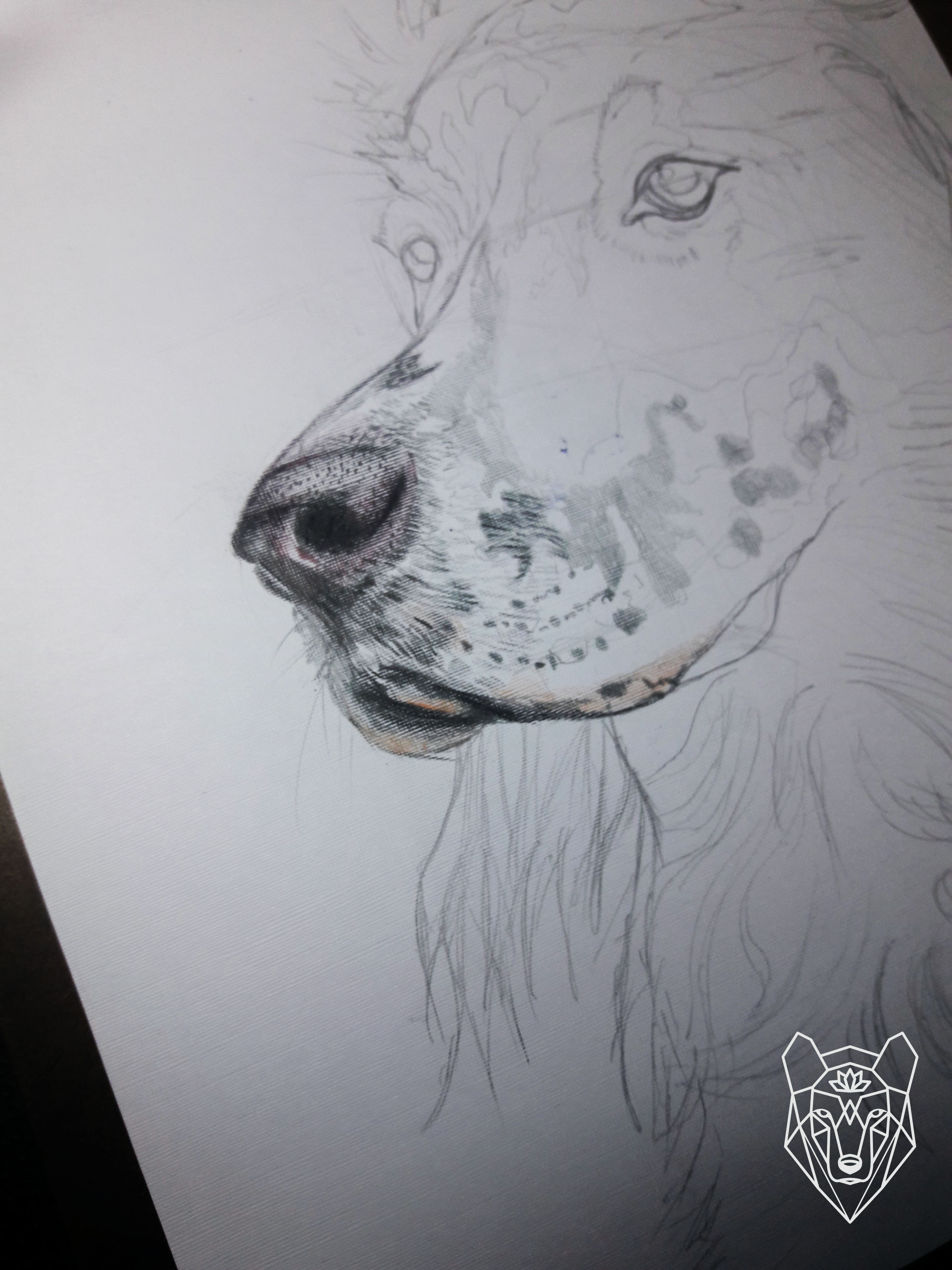 - I usually start painting the eyes but this time I started with the snout and I liked the dynamics