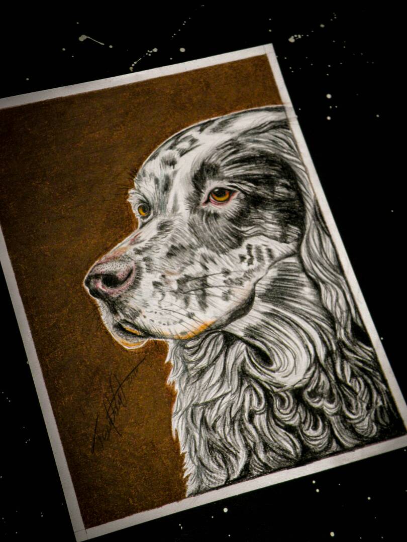 Un saludo a todos!. En esta oportunidad vengo a mostrarles una de mis nuevas ilustraciones. Amo realmente ilustrar retratos de perros y este realmente me ha gustado. Se llama capitán el perrito, es supe agradable y realmente juguetón. Lo he dibujado sobre una cartulina de hilo blanca, me encanta la textura que te brinda al momento de dibujar y colores de diferentes marcas ( prismacolor, faber castell) . Este retrato ha sido parte de una colección de obras a color que estoy trabajando y pronto se las mostraré.