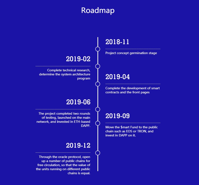 $mart Fund is completely decentralized, and tends to use voting, investing in DAPP projects with clear profit model on the Ethereum platform. The reserve is open, yet it constrains the speed of procurement and recovery, and makes the funds keep appreciating.