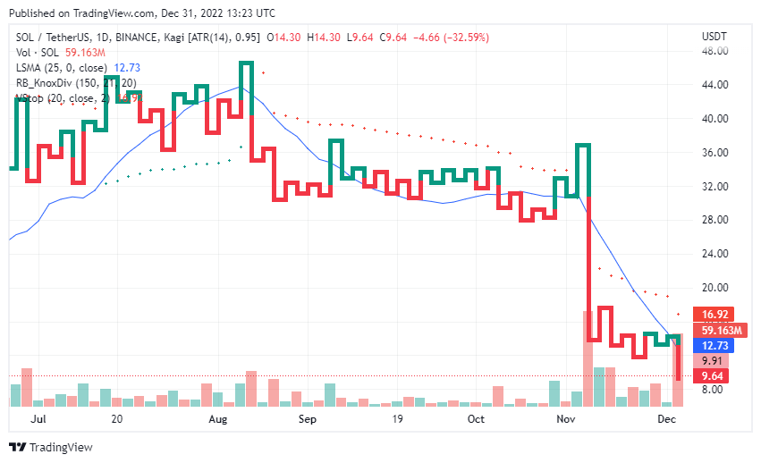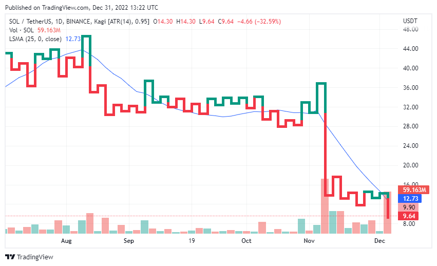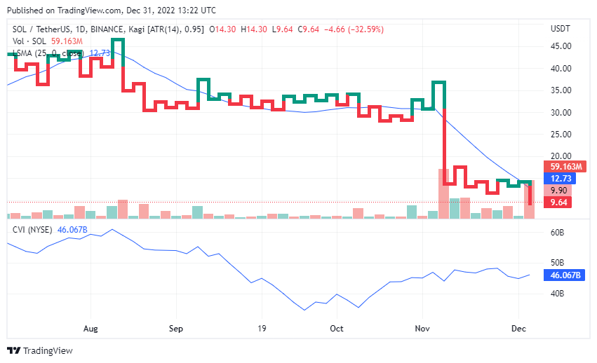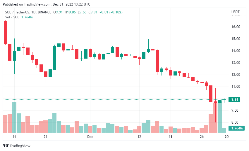Solana is currently priced at $9.89 USD with a 24-hour trading volume of $428,812,206 USD. Solana has gained 2.59% in the last 24 hours.