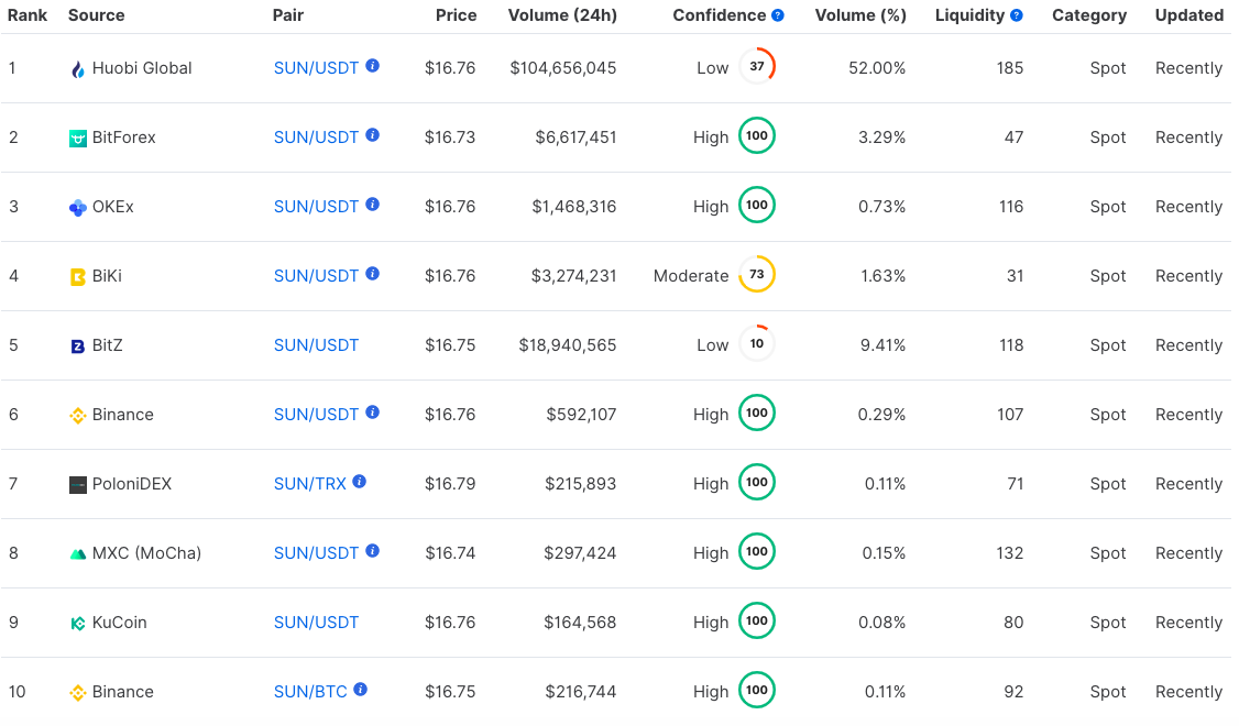 And SUN has been listed on 30+ platforms which users can trade.