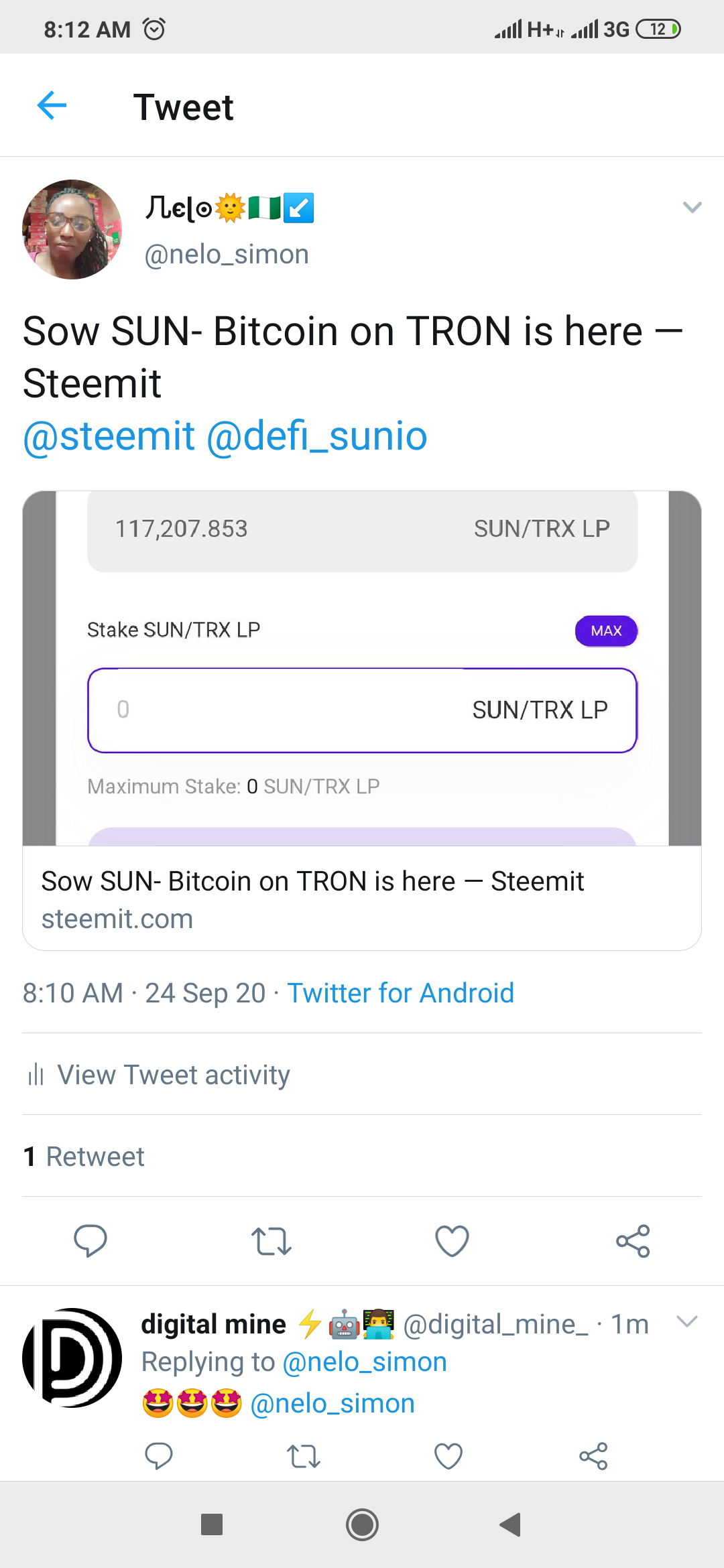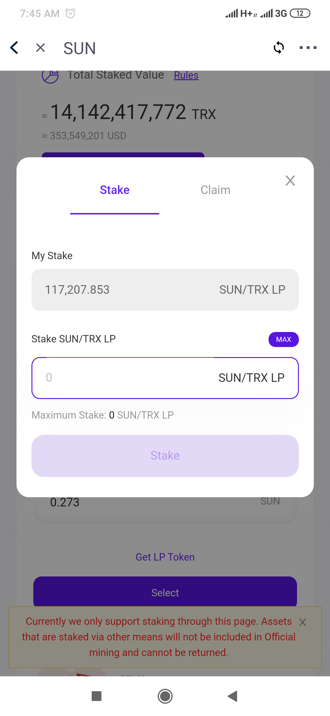 The SUN Genesis mining procedure by staking TRX to earn SUN was easy as ABC and as simple as 123. Not more than a minute and voila you're done.