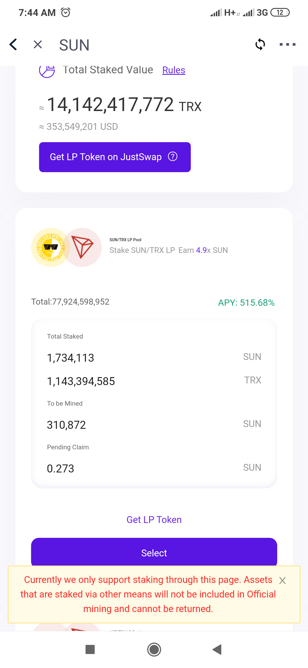 This is the most interesting part as the Liquidity Pool (LP) mining was complex a bit. Good news is that users can also mine #SUN through the simplest way of staking $TRX without participating in complex Liquidity Pool mining. Also, you deposit and withdraw at any time with high profits.