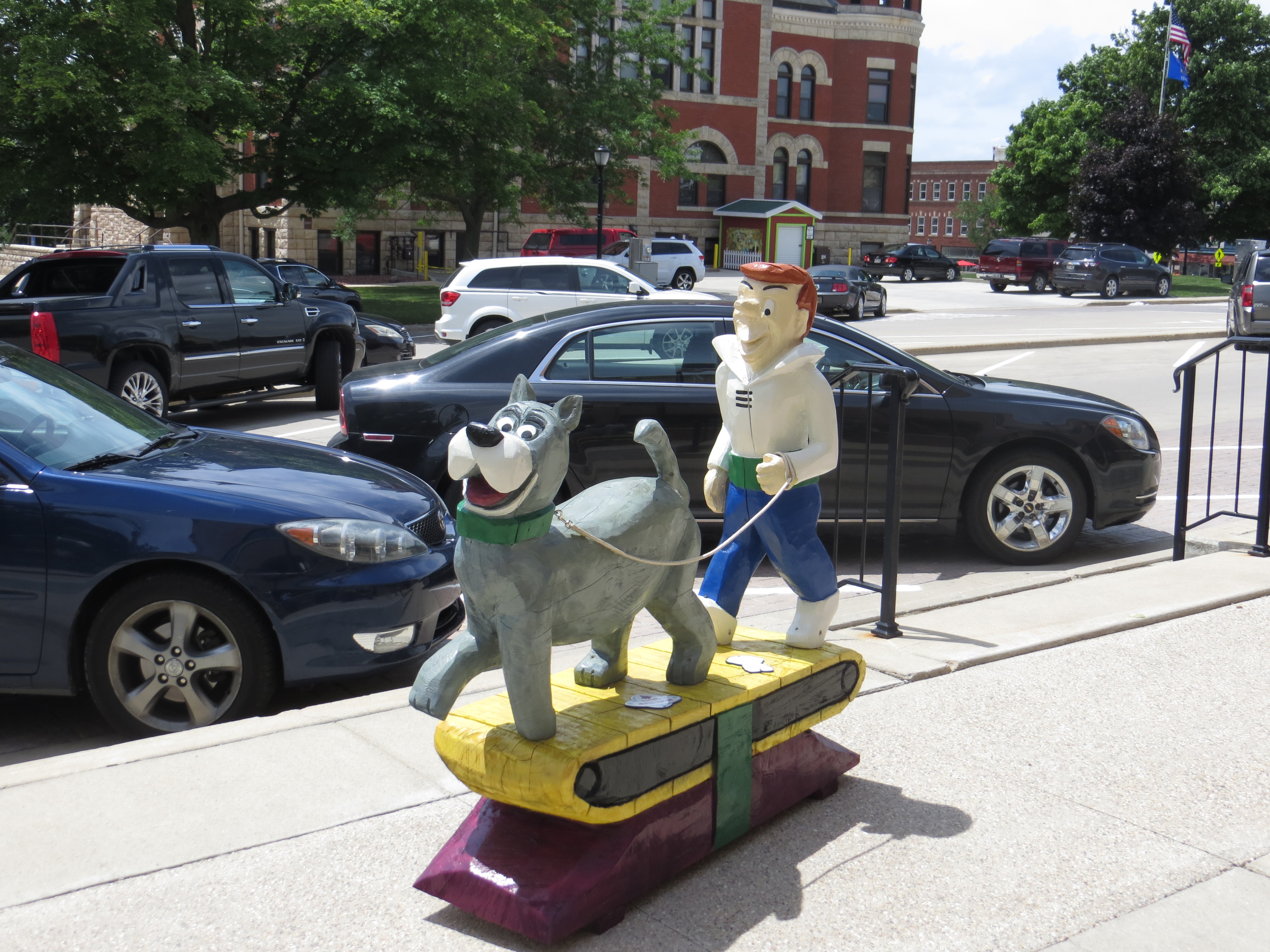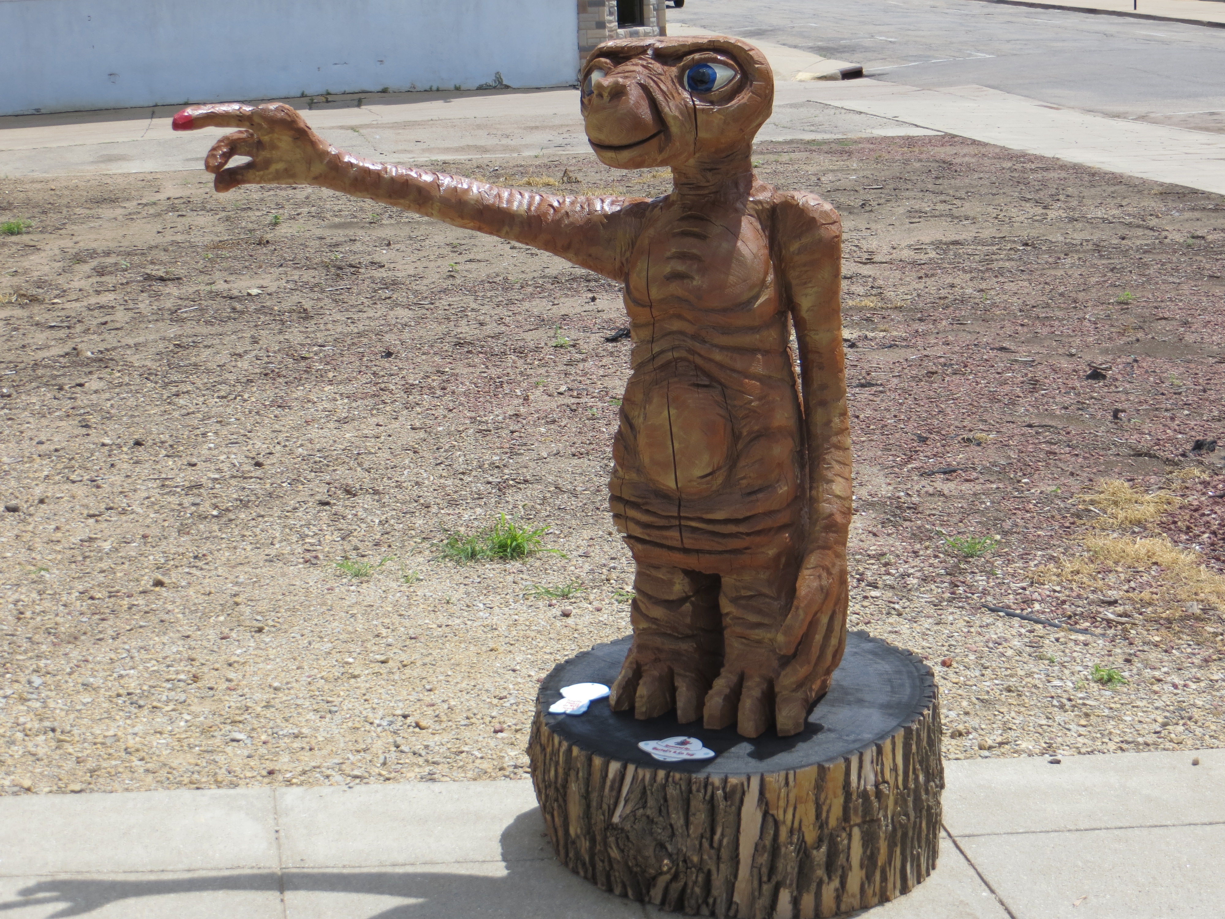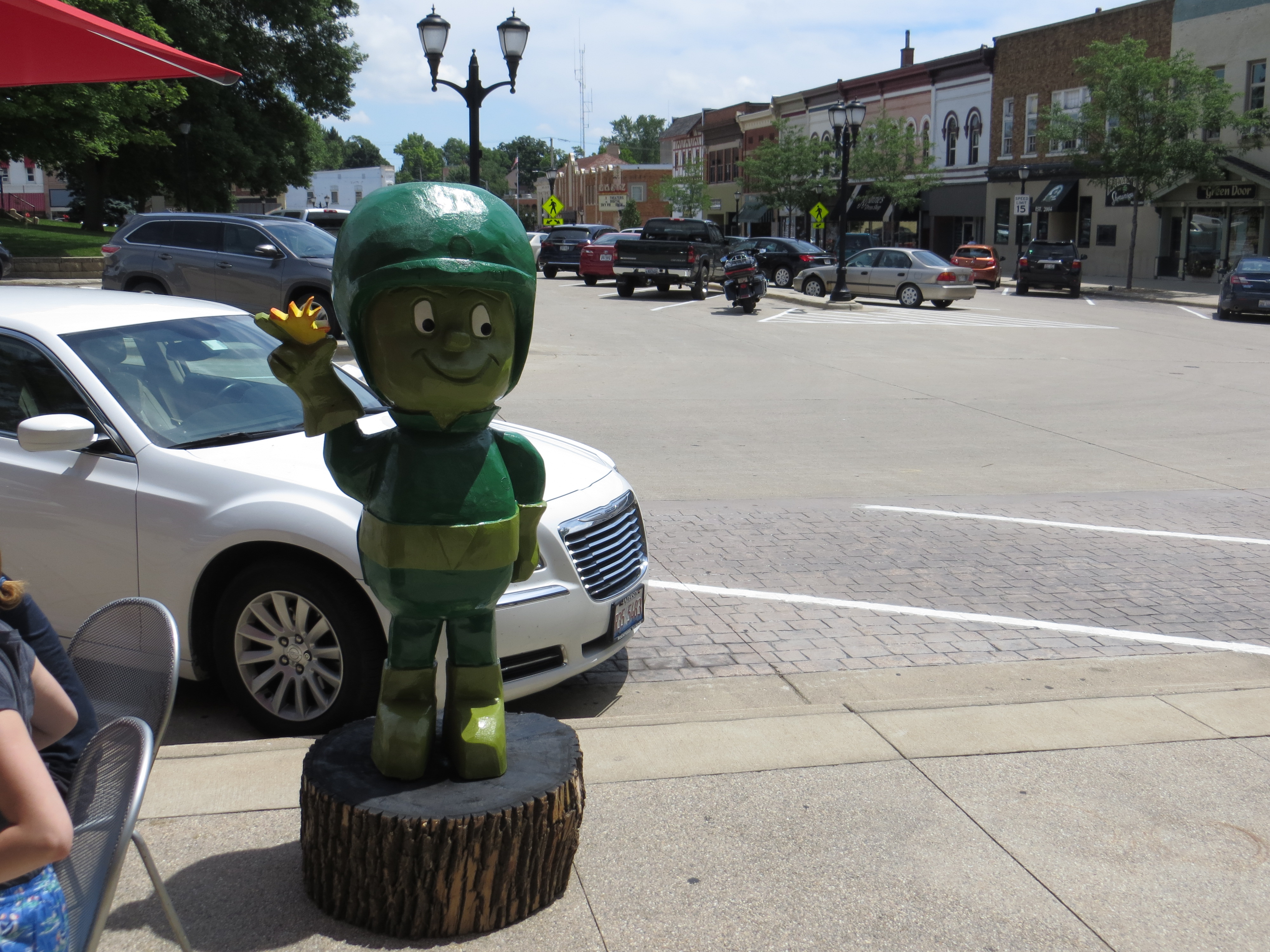 Dropped my daughter off for her week of fun and sun at summer camp and stopped for lunch in Monroe Wisconsin. Apparently the artists take over the downtown square with different themes of exhibits and such. It seems this time it's a space theme, at least I hope so. Below are some of the characters that are lining their streets which all appear to be carved of wood. To make things fun, I tagged each pic 1-7. Please feel free to comment on the name of each character. I can't give a Steem award as I have none to give so identifying each character will just give you bragging rights with your friends and family and I'll think you're pretty cool. So there's that. Have fun and enjoy downtown Monroe outer space style.